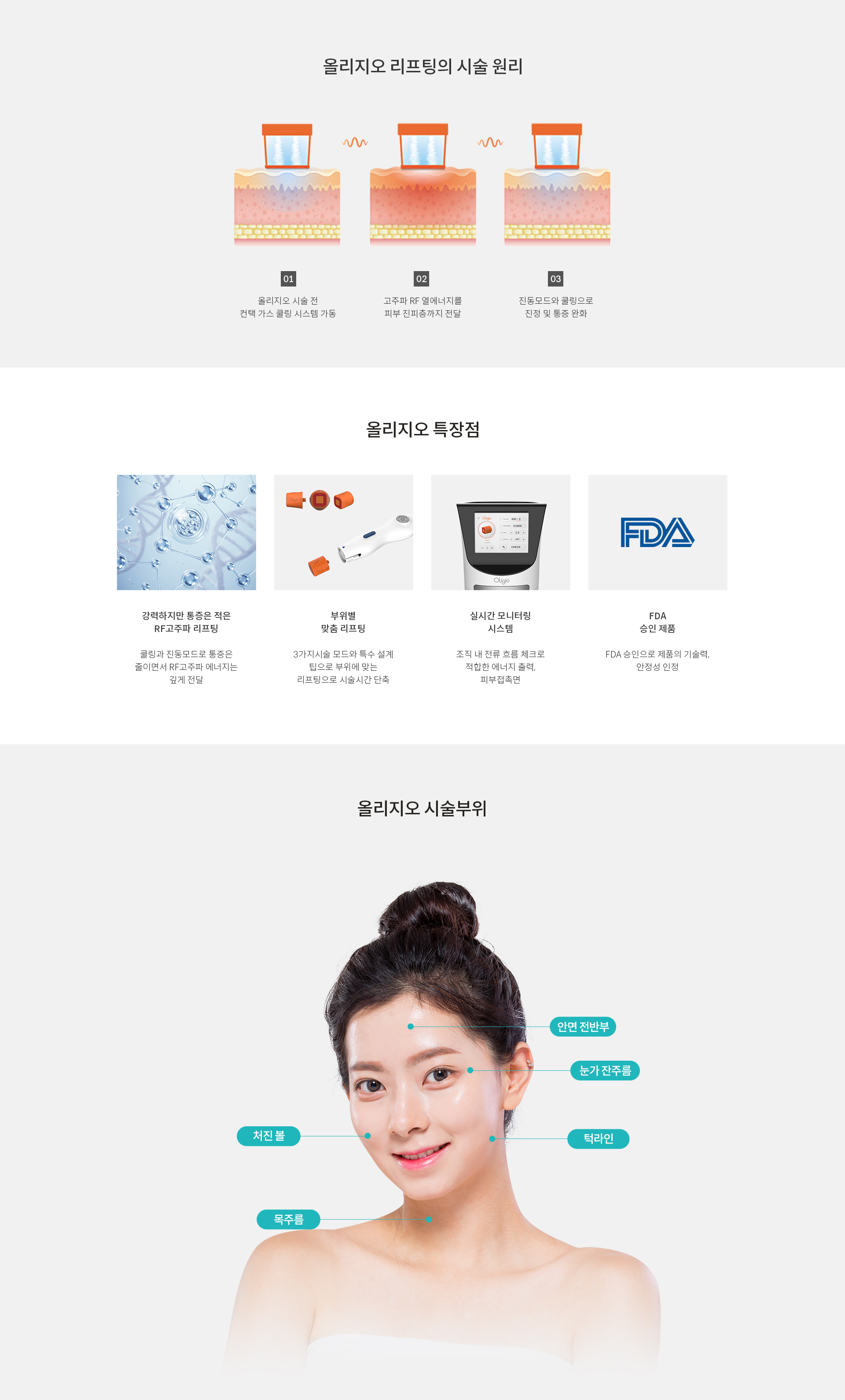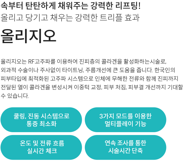 강한 고주파 전류로 피부 내에 40~60도의 열을 발생시켜 콜라겐 재생을
