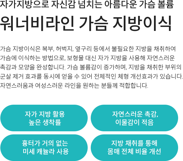 자가지방으로 자연스러운 촉감과 여성스러운 라인을 살리고